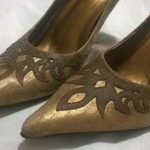 I love these! They are gorgeous!!! I wore them once with jeans and a hot top and had so many compliments. However, these are slightly narrow fitting on me which may be the nature of the pointy toe. I am selling only because of the fit. Very hard to find slightly metallic real leather w/ stunning details. I think maybe 1 of a kind? Please let me know of any more out there like this. Very Well Made.