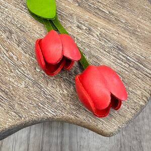 Leather Pretty Pink Tulip Purse Charm Genuine Leather Tulip Flower Bag Charm