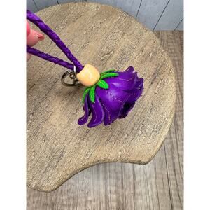 Leather Purple Flower Purse Charm Genuine Leather Bag Charm NEW FAST SHIP