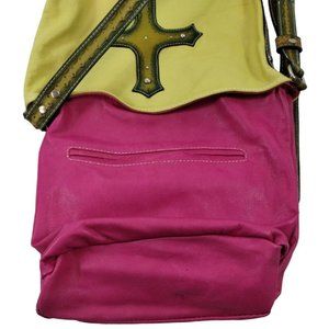 Leather Purse with Studded Religious Cross Crossbody Bag Chartreuse Yellow