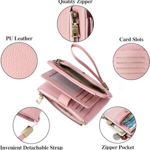 Leather RFID Wallet Women Small Bifold with Coin Purse and Wristlet