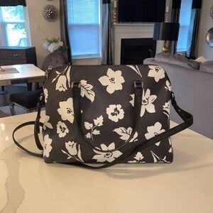 Leather Ralph Lauren RLL Floral White and Black Over the shoulder Handbag