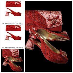 Elevate your style with the exquisite Leather Red Enzo di Roma 3.5 Heels Shoe and Bag Italian set. Crafted with premium leather and featuring a stunning embroidered design, this set exudes luxury and sophistication. The matching red shoes and bag are the perfect accessories to complete any outfit, whether for a special occasion or a wedding party. Made in Italy, this set showcases impeccable craftsmanship and timeless elegance. Add a touch of Italian flair to your wardrobe with this must-have set.