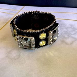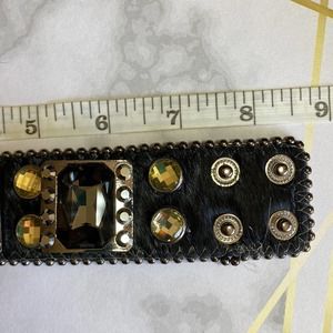 Leather Rhinestone and Cow Hair Leather Bangle Cuff Bracelet