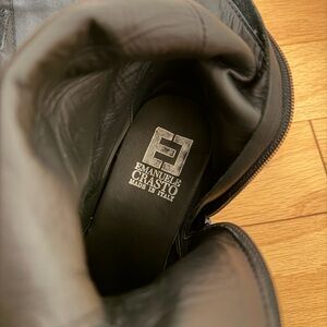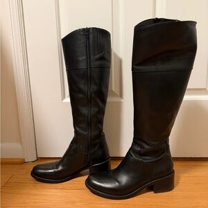 Elevate your wardrobe with these sleek black over the knee leather boots. Perfect for adding a touch of elegance to any outfit.