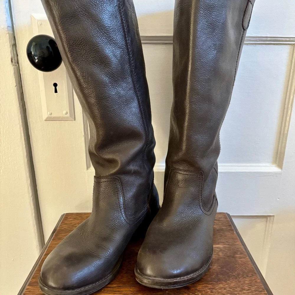 Tall leather riding boots, very comfortable, classic clean look.