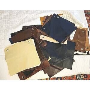 This product is a collection of 46 leather salesman sample swatches from Lazy Boy, each measuring 11 x 12 inches. The swatches come in a variety of multicolors and are suitable for crafts and sewing projects.