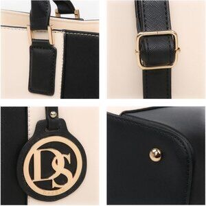 Features: Elegant vegan leather tote with gold-tone hardware, a sleek zip closure, and a trendy tassel. Spacious enough to hold a small tablet, iPad, files, and books. Comes with a matching wallet perfect for organizing cards and cash. Designed with durable studs and anti-scratch material, it’s perfect for work, shopping, or travel.