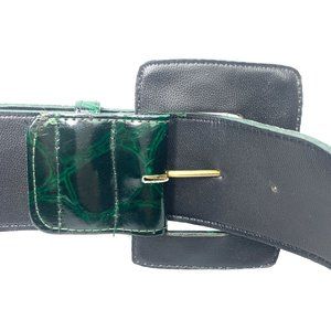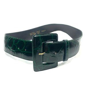 Leather Shop Women's Emerald Green Croc-Embossed Wide Leather Belt - Size Medium