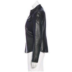 Leather Short Hem Blazer Jacket KENNETH COLE Black Banded Collar Womens M 6 8