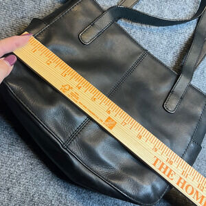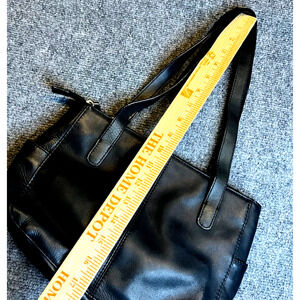 Leather Shoulder Handbag Black Small Double Handles Side Pockets Classic Casual
