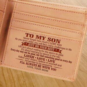 Leather Slim Wallet RFID Blocking Personal Gift for Son from Mom — A thoughtful and practical gift with a personal touch.