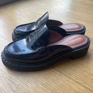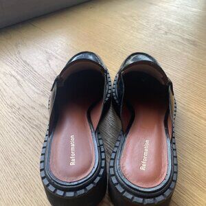 Genuine leather slip-on loafers from Reformation in classic black.