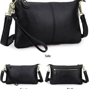 Leather Small Crossbody Bag for Women Compact Zipper Purses Wallets