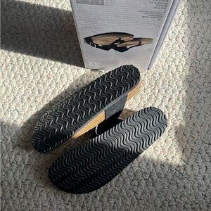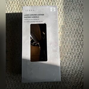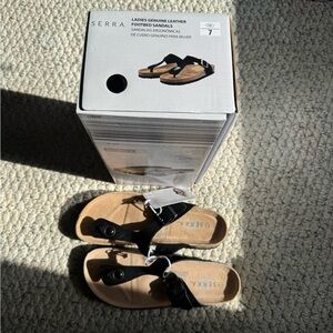 Serra black suede leather sandals. Similar style to Birkenstock Gizeh. New in box.