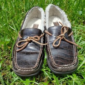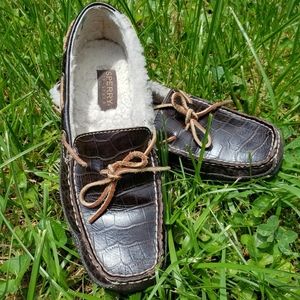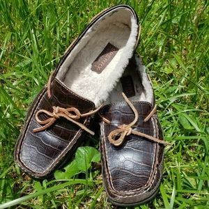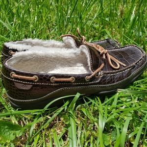Great Brown Crocodile Pattern Leather Sperry Top-Sider Fur Lined Loafers Size 8. EUC!!