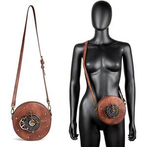 Features: Crafted from high-quality PU leather with durable metal hardware, this bag exudes steampunk charm with gear accents and a rustic vibe. It features an adjustable shoulder strap, a comfortable carrying handle, and multiple compartments—perfect for tablets, wallets, keys, and more. Its versatile design allows for hand carry or crossbody wear, making it ideal for festivals, cosplay, or everyday use.