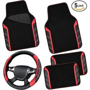 Leather Steering Wheel Cover and Waterproof Car Floor Mats,Microfiber Universal