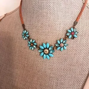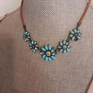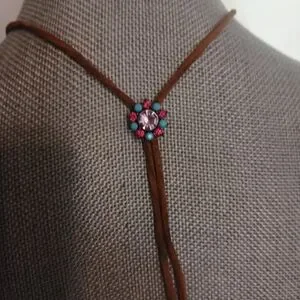 Leather String Rhinestone Necklace