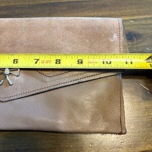 Leather Suede Envelope Clutch Bag Tan Gray Neutral Bow Vintage Bohemian Festival