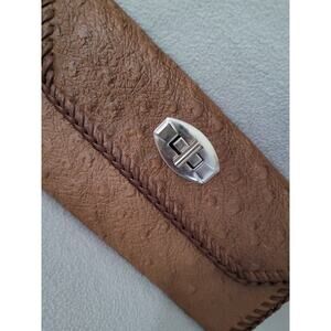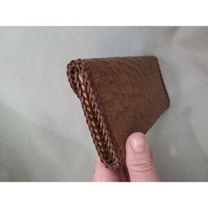 Leather Suede Trifold Wallet Side Stitch Ostrich Woven Edge