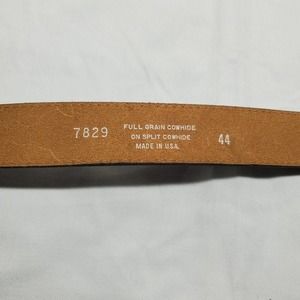 Style: Tooled brown lether belt. Cowhide on Split Cowhide, made in the USA. Brown with silver buckle.