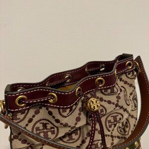 Leather Tory Burch monogram bucket bag