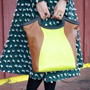 Leather Tote Bag Classic two tone Crossbody Clutch New