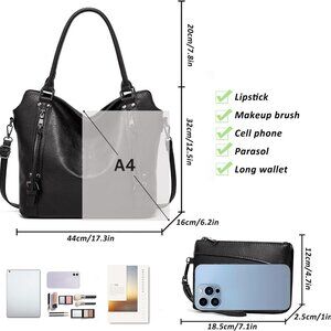Features: Made from PU leather with a durable lining and tassel accents. This versatile tote can be worn as a shoulder bag, crossbody, or tote. It fits up to a 15.6-inch laptop, with multiple pockets including a hidden anti-theft zipper to keep your essentials organized and secure. Comes with a matching coin purse and an adjustable, detachable shoulder strap for customizable styling.