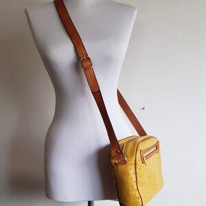 Leather VINTAGE ITALIAN Bag 80s Retro Crossbody Boxy Mustard Yellow Tan Brown