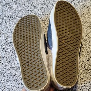 Blue Leather Vans! Small stain on heel of the right shoe as shown in the picture. Offers welcomed!