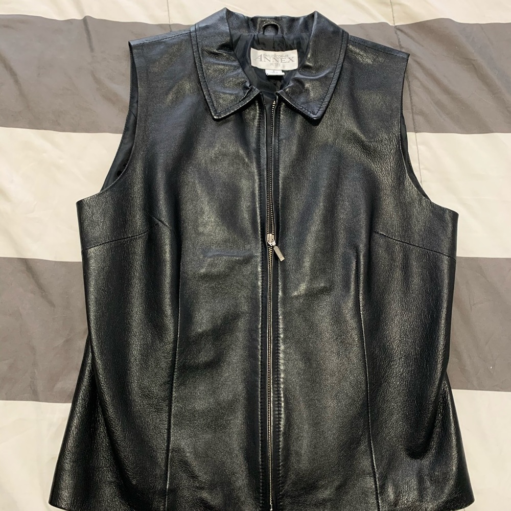 Black leather vest. Worn a handful amount of times, still in great condition with a lot of wear left