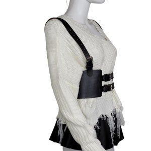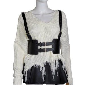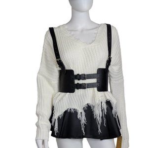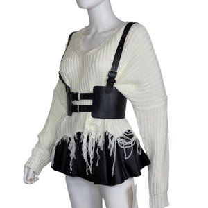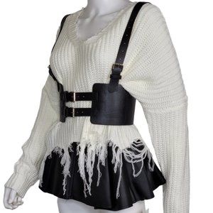Leather Vintage Style Suspender Belt, Distressed Sweater, and Peplum Skirt