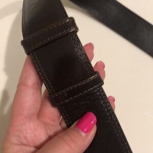 Leather waist belt size S, dark brown with silver tone hardware carabiner closure.