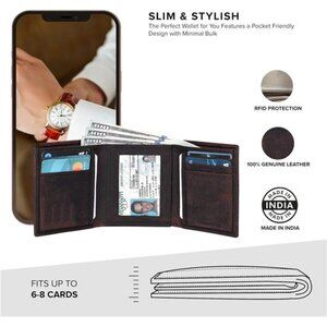 The trifold wallet offers multiple compartments, thoughtfully designed to hold credit cards, note, and small document. It ensures that everything stays organized and easily accessible for the busy individual on-the-go.