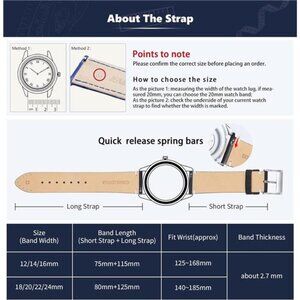 *【Size Select】Please measure the width of your watch lug correctly and choose corresponding width of watch band. This watchband is fits for any watch (traditional watch or smartwatch) that uses 12mm, 14mm, 16mm, 18mm, 20mm, 22mm or 24mm spring bars.
