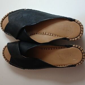 Franco Sarto sandles with espadrille style wedge. Leather Upper.