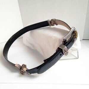Brighton Leather Western Belt NWT Brown Reptile Print Silver Toned Hardware. Giftable!