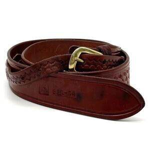 Leather Western Hand Tooled Belt Mens 34 Brass Buckle Ranch Traditional Leather