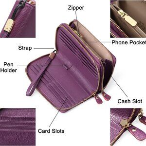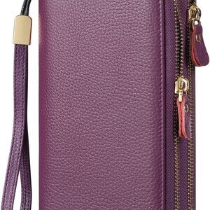 Leather Women Wallet RFID Blocking Zipper Around Phone Holder Clutch — Stylish security and organization in one!