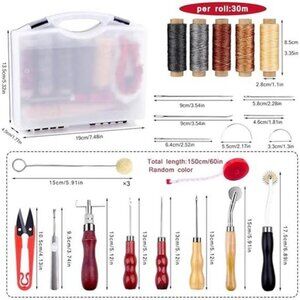 Leather Tool Set: This set includes different kinds of leather tools such as leather cutting knives, leather edge cutters, chisel punches, awls, wax threads, leather sewing needles etc.