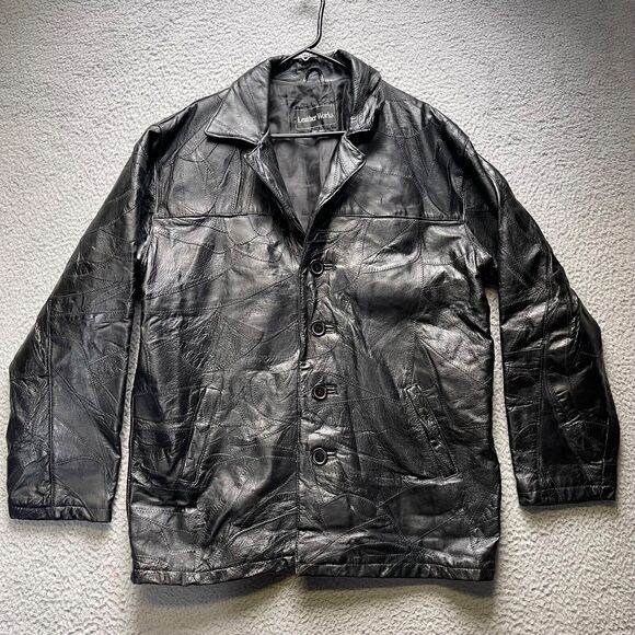 Leather Works Leather Jacket Mens Medium Black Button Front
