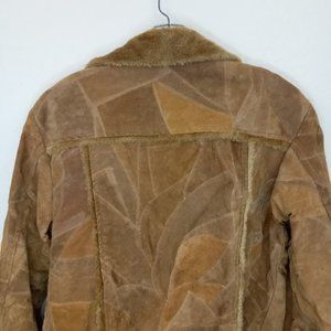 Leather Works Tan Suede Leather Faux Fur Jacket. It's like patches of different suede leather shades that are stitched together.