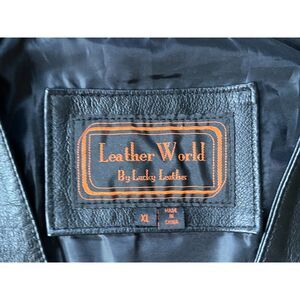 Leather World Black Leather Snap Button Waist Coat Motorcycle Vest Mens Size XL