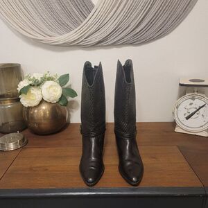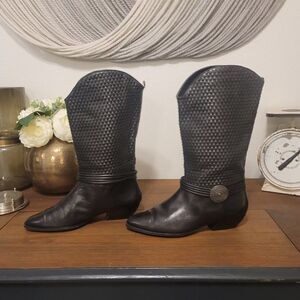 Leather Woven Boots with Buckle Detail Sz 8. Excellent, pre-owned condition.