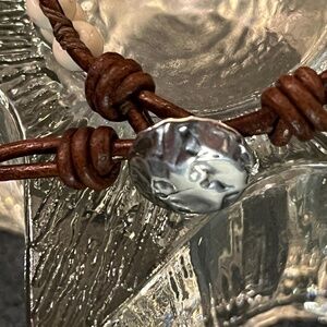Brown 2mm leather. Single wrap . Fits up to 6.5" -7.75" Adjustable.