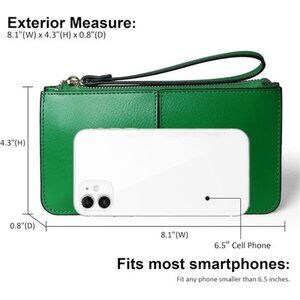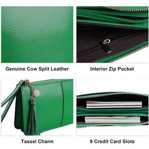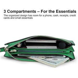 *1.The Take-everywhere Wristlet: Made of polished cow split leather, this clutch purse is designed with 3-compartment which easily keeps the essentials organized on the go! Wear it on your wrist or keep smaller items organized inside a larger bag
