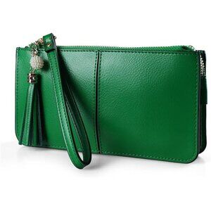 Leather Wristlet Clutch Ultra-Slim Ladies Travel Credit Card Holder Wallet