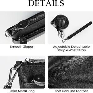 Features: Made from durable pebble leather with a sophisticated texture, this clutch features RFID blocking to keep your cards safe. Comes with two removable straps—a cute wristlet strap and an adjustable shoulder strap—so you can switch from clutch to crossbody in seconds. The interior is thoughtfully organized with multiple card slots, a zip pocket, and space for your phone and essentials, making it perfect for days on the go or fancy nights out.