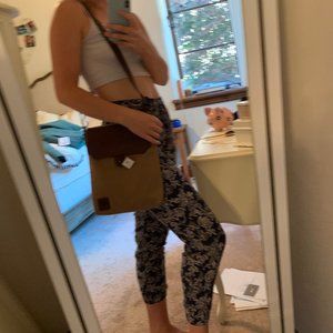 Goes with everything. Genuine leather flap/strap/detailing. Canvas bag.